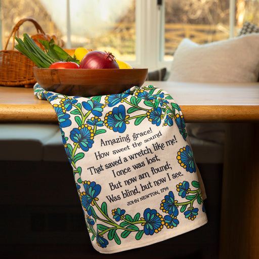 View full detailsBrighten your home with color and song. The Amazing Grace hymn tea towel is printed in full colors blues and creams and features lyrics from the hy...