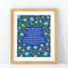 Add a beautiful reminder of the Lord's faithfulness to your home with the Trust and Obey hymn art print. The cherished text, surrounded by cheerful floral illustrations in green and white against an vivid indigo background, will compliment any room. Quality printing and superb design make this wall art stand out. Illustrated by Kate Whitley.