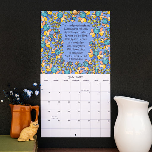 The 2026 Big Hymn Calendar is a spacious planner with beautiful hymn prints for y'all to hang wherever you need daily reminders of truth, as well a...
