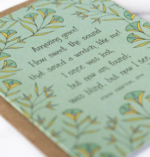 Want to send an uplifting message or encouraging note? The light green Amazing Grace hymn greeting card is the perfect way to say "I'm thinking of ...