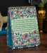 The artwork bursts with cheerful, folk-art-inspired florals in rich jewel tones—think bold yellows, deep blues, soft pinks, and pops of gold—framing the lyrics in a style that echoes illuminated manuscripts, Scandinavian folk patterns, Ukrainian embroidery, and the warm glow of stained glass. Illustrated with love and intention to bring daily reminders of God's grace right into your ordinary moments.