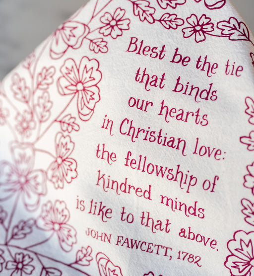 Our hymn tea towels brighten your home with color and song. The Blest Be the Tie That Binds hymn tea towel is printed in midnight magenta and featu...