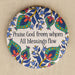 This hymn magnet features lines from the beloved hymn Praise God From Whom (Doxology). The text is surrounded by a vibrantly colored floral design with an eggshell background. Illustrated by Kate Whitley.