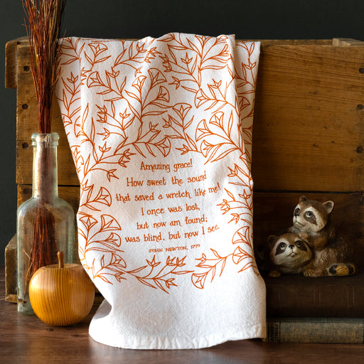 Our hymn tea towels brighten your home with color and song. The Amazing Grace hymn tea towel is printed in marmalade and features lyrics from the h...