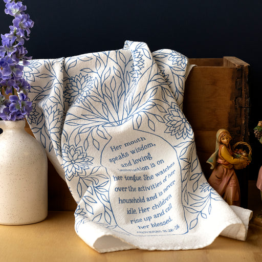 Bring wisdom and beauty into your home with our Scripture tea towels — a kitchen essential. This tea towel features Proverbs 31 scripture verses pr...