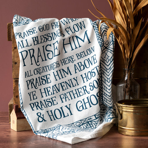 Our hymn tea towels brighten your home with color and song. The Doxology hymn tea towel is printed in peacock blue and features lyrics from the hym...